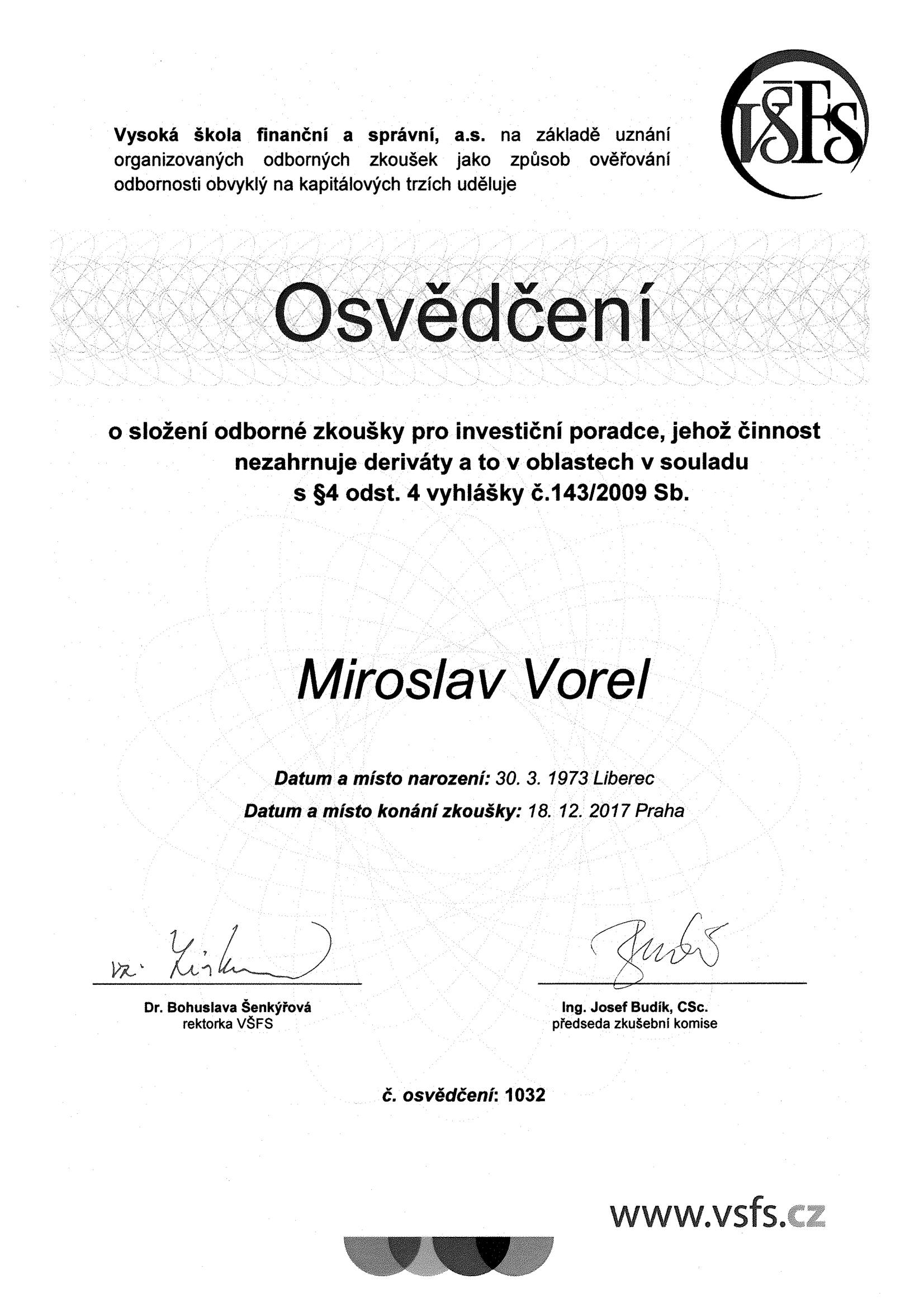 Klientům pomáhám řešit jejich potřeby a plánujeme a připravujeme je na jejich budoucí klíčové životní situace jako je vlastní bydlení, prostředky na vzdělání dětí a finanční nezávislost. Velmi si vážím vzájemného vztahu a důvěry bez kterých moje služby nelze profesionálně nabízet.